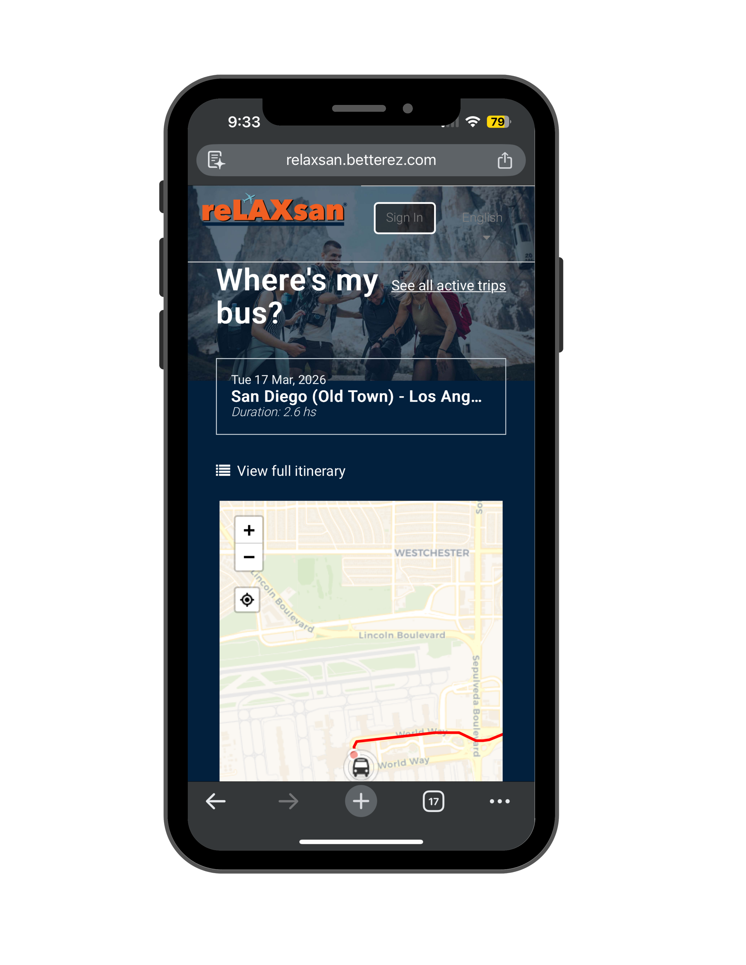 The Where’s My Bus feature allows you to track your reLAXsan airport shuttle in real time directly from our website — no app required.