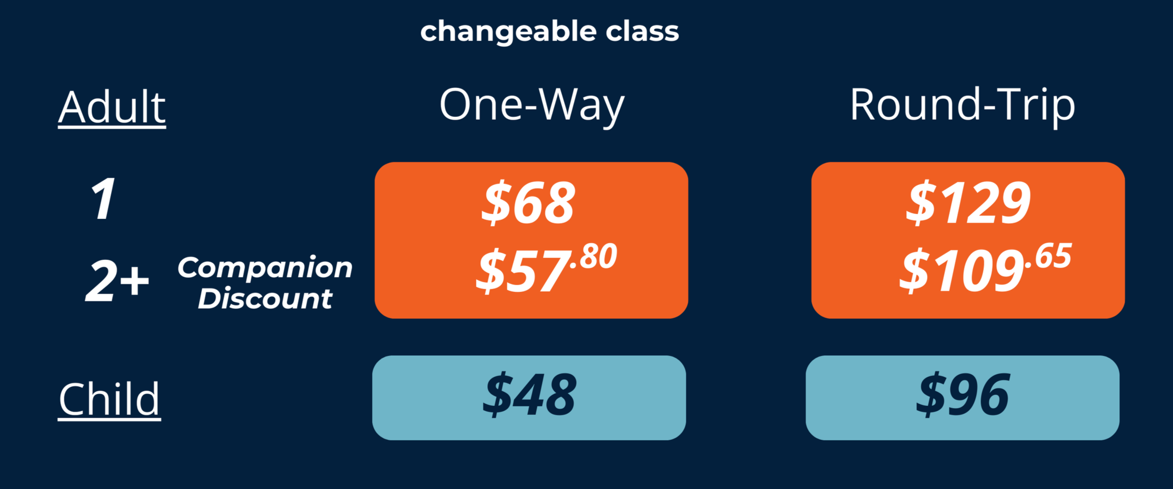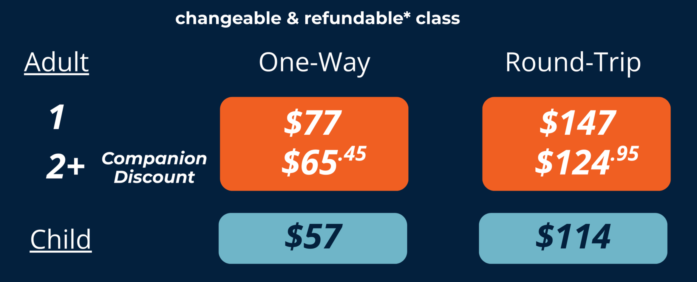 * The difference in fare ($9) for Flex Fare tickets is considered insurance and is non-refundable