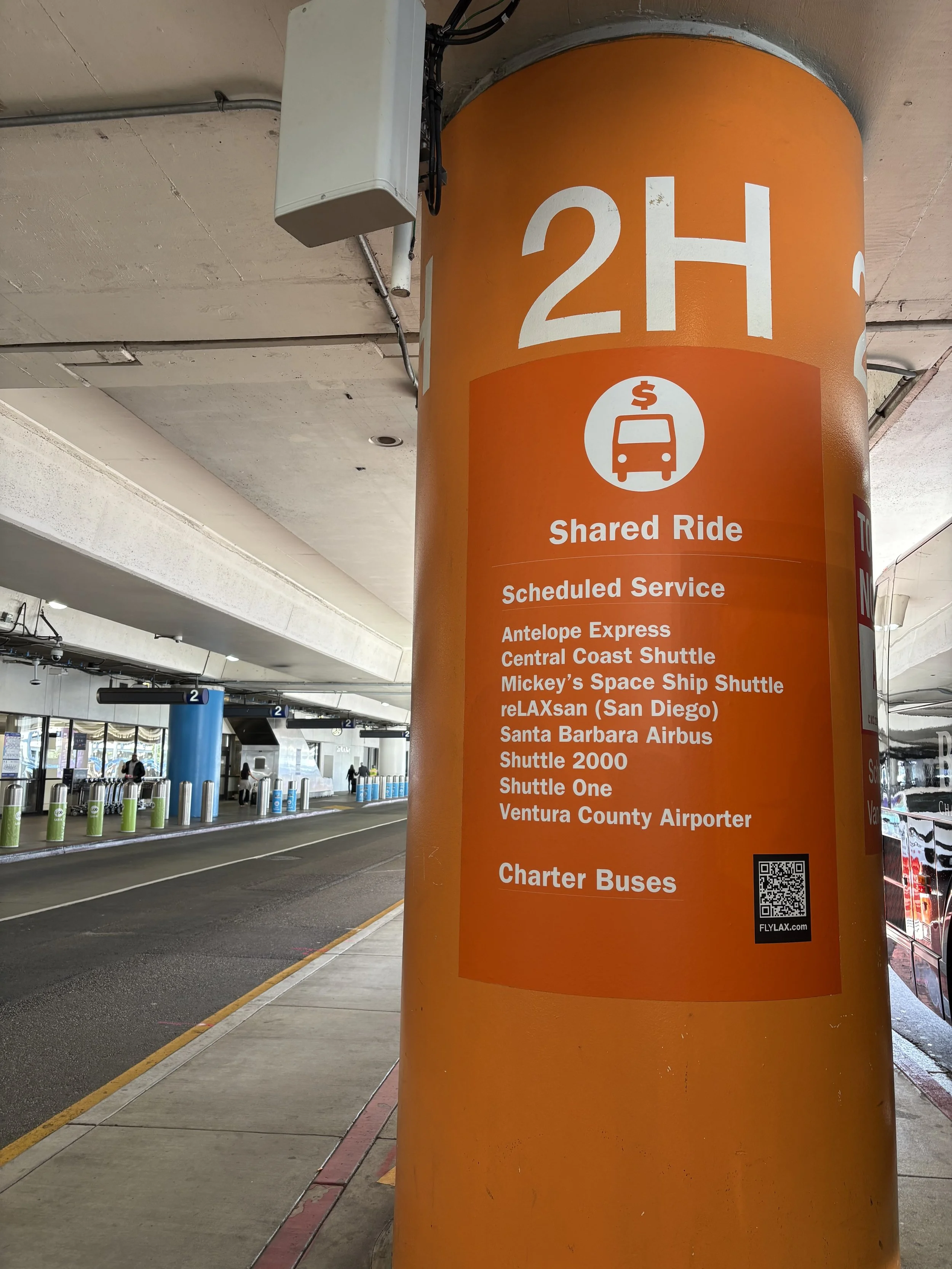 LAX Airport Pickup Passengers should wait at the center island under the ORANGE ‘Shared Rides’ signs on the Lower/Arrivals Level in front of their terminals.If you arrive in Tom Bradley International terminal please proceed to Terminal B ‘Shared Rides’. Terminal 1 please proceed to Terminal 2. Terminal 2Please meet us in between columns 2H and 2J. Terminal 3Please meet us in between columns 3F and 3G. Tom Bradley International AirportPlease meet us at column B10. Terminal 4Please meet us at column T4. Terminal 5 please proceed to Terminal 6. Terminal 6Please meet us in between columns 6H and 6J. Terminal 7Please meet us in between columns 7C and 7D. How to get to your reLAXsan LAX pickup from Tom Bradley International Terminal 8 please proceed to Terminal 7.
